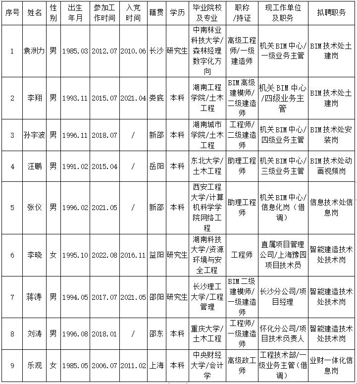 為了加強對干部選拔工作的監(jiān)督,提高識別和任用干部的準確程度,公司按照2025年4月21日發(fā)布的《湖南建投四建集團有限公司公開招聘公告》的要求,開展了公開招聘工作。現(xiàn)根據(jù)招聘結(jié)果,經(jīng)公司研究決定對袁洲力等9名同志擬任職務進行任前公示。
